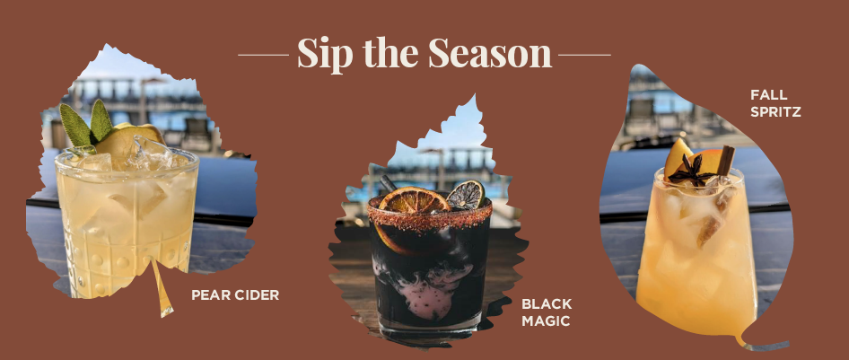 A sparkling seasonal delight with vodka, apple cider, vanilla, caramel, and lemon juice topped with prosecco. Garnished with crisp apple slices, star anise, and cinnamon stick.