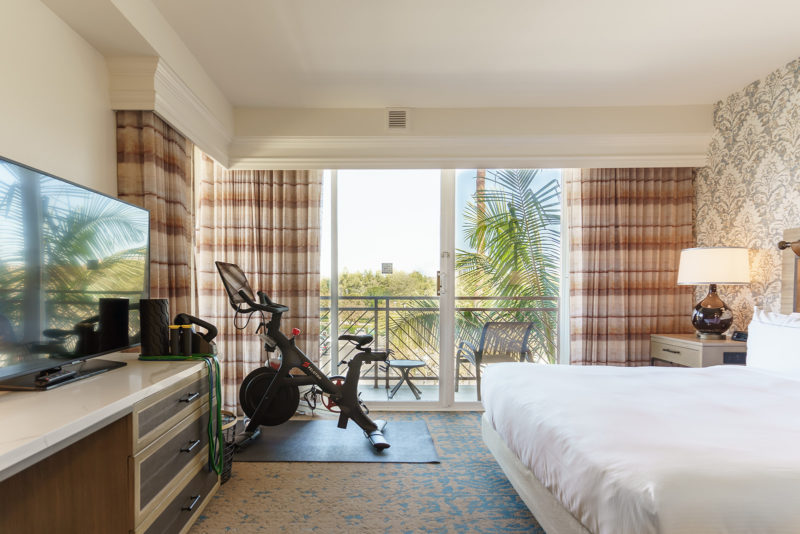 Book one of our new Peloton rooms and receive Fitness Bonus bag including healthy snacks, hydration, water bottle, and resuable tote. Our Premium Peloton Wellness rooms include luxury King bed, private Peloton bike along with TRX resistance bands, reversible yoga mat, and 2lb weights. Plus, a bonus savings of complimentary parking.